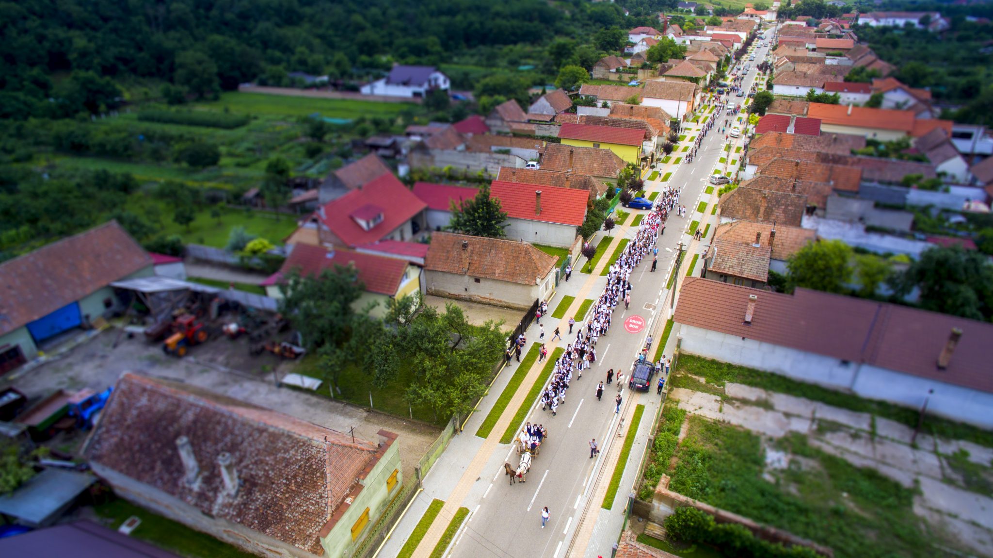 Cu dreptunghiuri de gazon verde la porţi şi acoperişuri de aceeaşi nuanţă, cu drumuri asfaltate şi corespunzător marcate… chiar şi hăt dincolo, între parcelele agricole, locul pare, privit de sus, decupat din landurile bavareze. Dar nu e. Este Ciugudul Albei.
