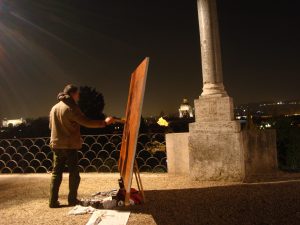 R.Ș.: Nu sunt mulți pictorii care pictează, noaptea, în plein air. Ai făcut-o la Roma, la Veneția, la Viena. Mai pictezi pe întuneric? Care e miza, de fapt, a acestui demers, ce se vede când nu e lumină?