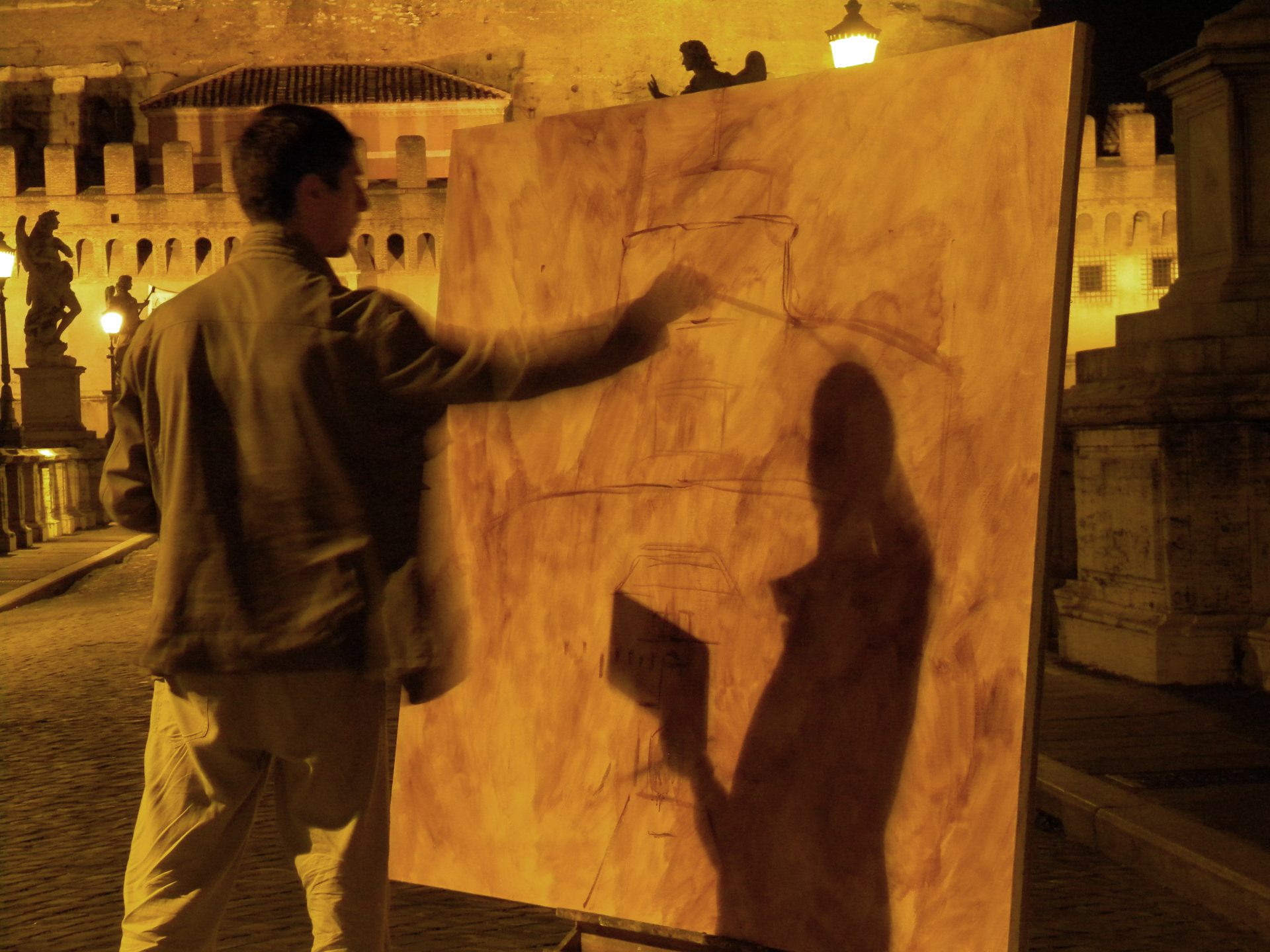 R.Ș.: Nu sunt mulți pictorii care pictează, noaptea, în plein air. Ai făcut-o la Roma, la Veneția, la Viena. Mai pictezi pe întuneric? Care e miza, de fapt, a acestui demers, ce se vede când nu e lumină?