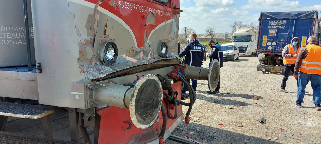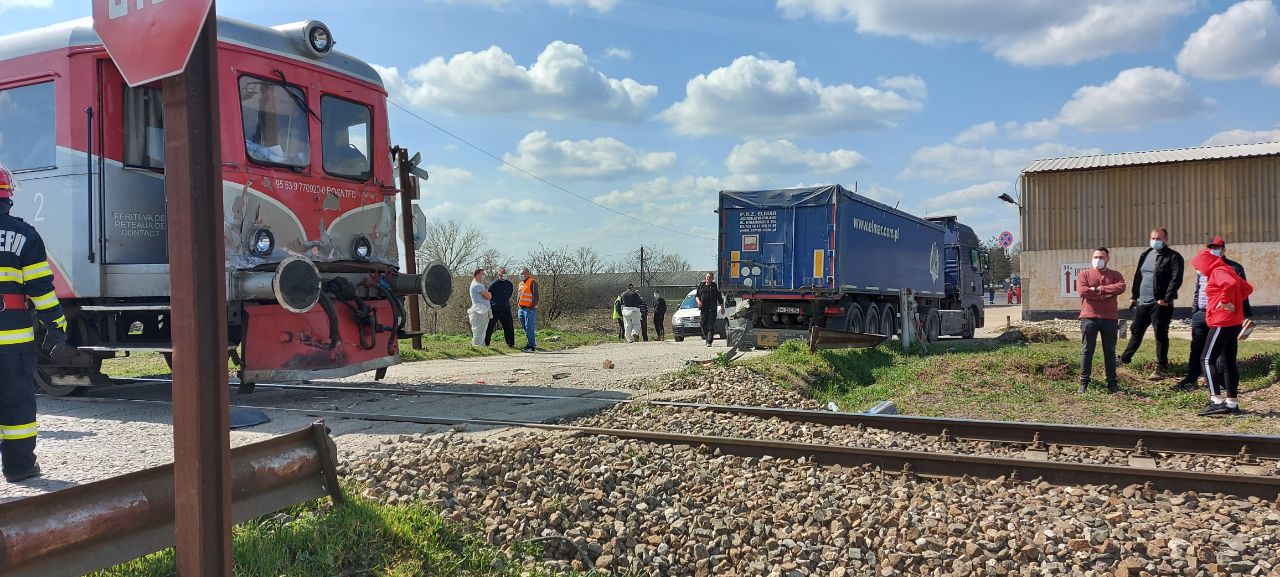 Update: Potrivit CFR Infrastructură, trecerea la nivel cu calea ferată era semnalizată cu indicator rutier și șoferul camionului nu l-ar fi respectat. Trenul a staționat la locul incidentului aproximativ două ore.