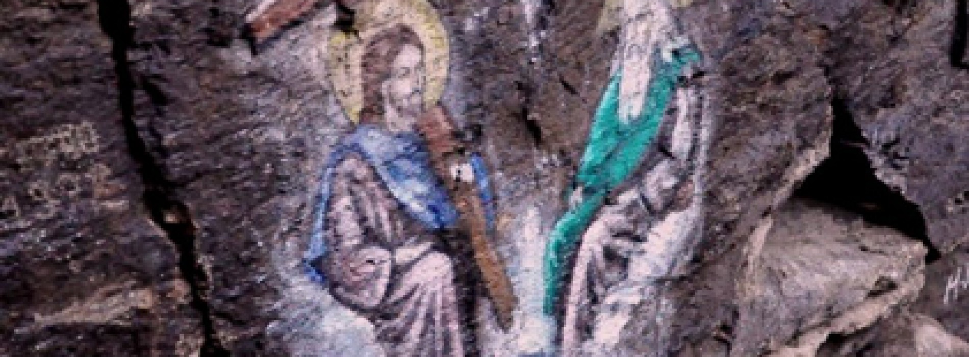Astfel, se spune că un conducător de oaste creștin, urmărit de otomani, a căzut cu cal cu tot de pe coama unui deal până în râul Timiș, scăpând nevătămat. Drept mulțumire, el a dat poruncă să se zugrăvească pe stâncă Sfânta Treime.