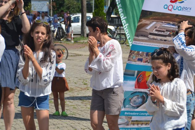 Ca întotdeauna, un DJ a încălzit atmosfera. Doamnele au fost invitate insistent să părăsească umbra clădirii și să participe la mișcările de încălzire coordonate de o instructoare de fitness. S-au dat greu duse de la umbră, dar, în cele din urmă au reușit să încropească și o horă ca la o rugă.