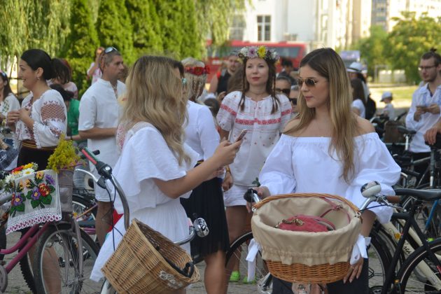 Majoritatea domnițelor aveau asupra lor măcar o coroniță de flori de sânziene, dacă nu chiar câte un buchet imens, pentru a celebra bucuria mișcării în natură. Sigur că, de la eveniment nu puteau lipsi nici telefoanele mobile, fie pentru imortalizarea momentelor, fie pe post de oglindă pentru aranjarea machiajului. Că doar cine a mai văzut să pleci la drum cu bicicleta făra un machiaj impecabil?
