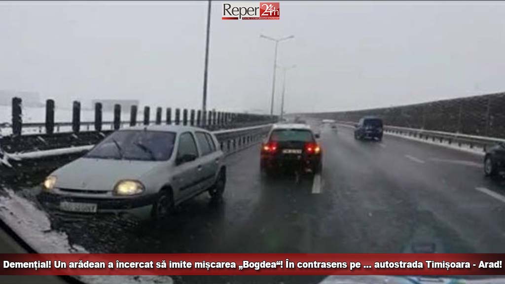 De această dată, așa-zisul șofer, posesor al unui autoturism înmatriculat în județul Arad, a intrat pe contrasens pe Autostrada Timișoara -Arad, fiind evitat la limită de cei care se îndreptau spre destinație cu viteza permisă de lege, 130km/h. Imaginea halucinantă, surprinsă de unul dintre șoferii care se aflau pe autostradă, face de prisos orice comentariu.