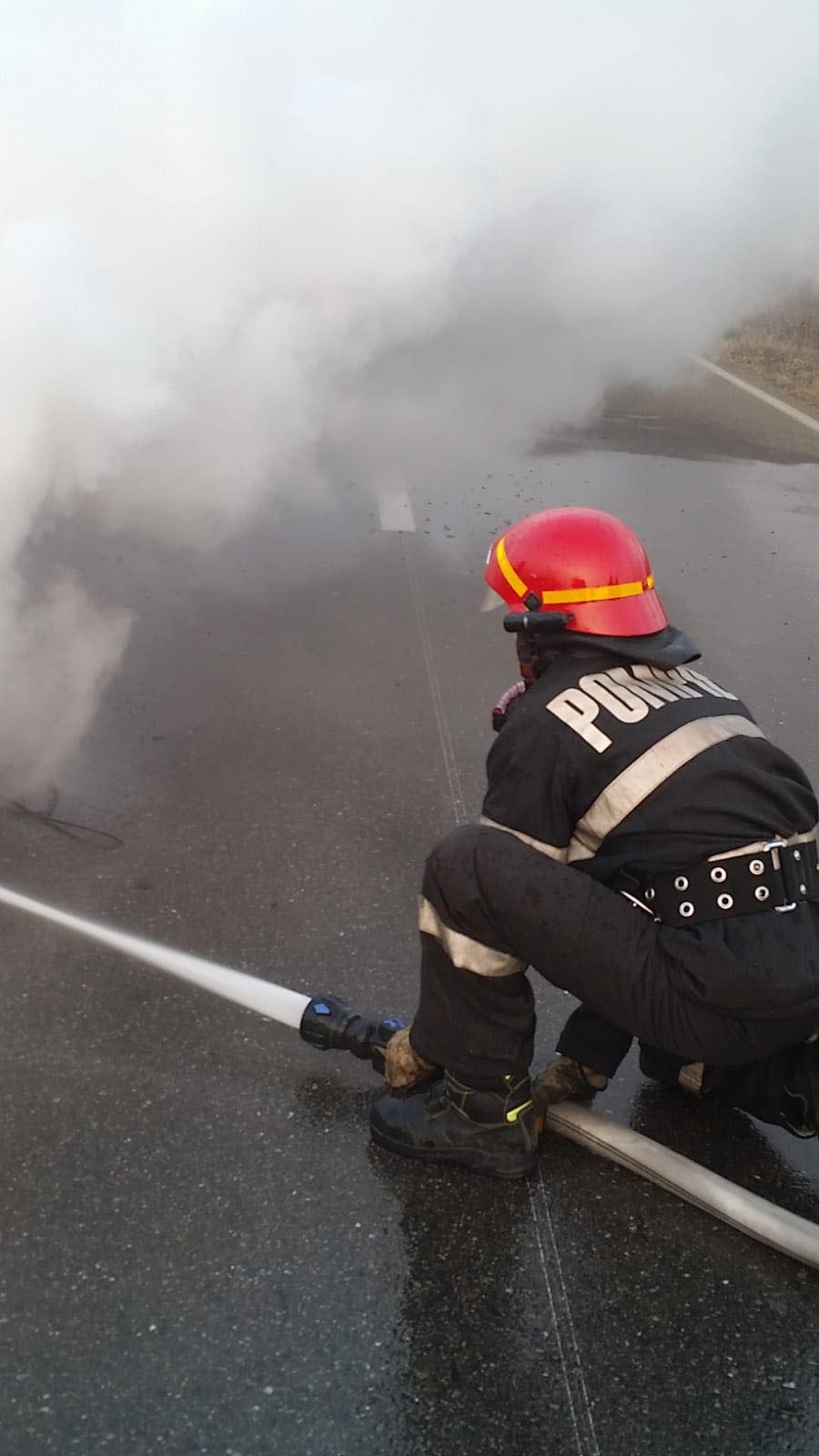 Pompierii au intervenit cu o autospecială de stingere cu apă și spumă și 6 subofițeri. În urma incendiului, au ars elementele combustibile ale compartimentului motor și habitaclu.