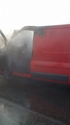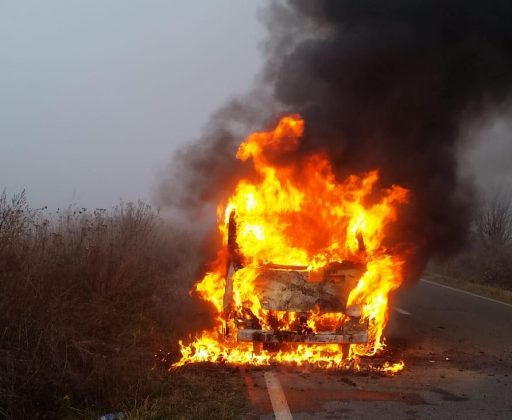 O mașină a luat foc pe un drum din vestul țării, în timp ce se afla în deplasare. Autoturismul a ars aproape în întregime.