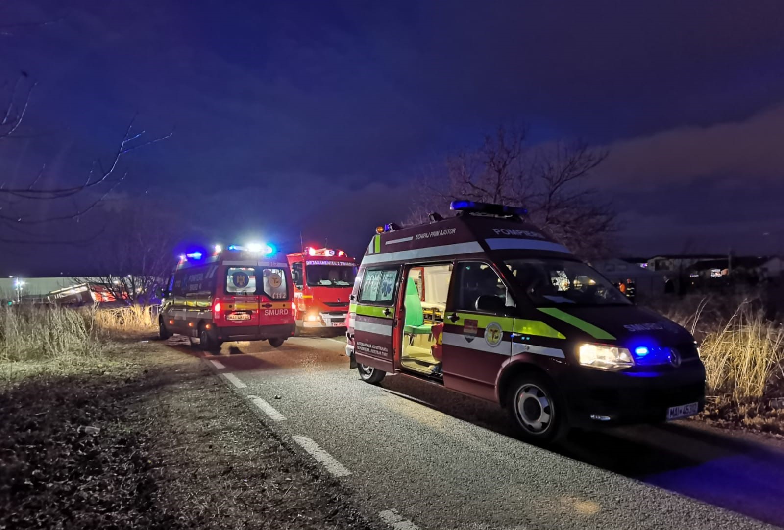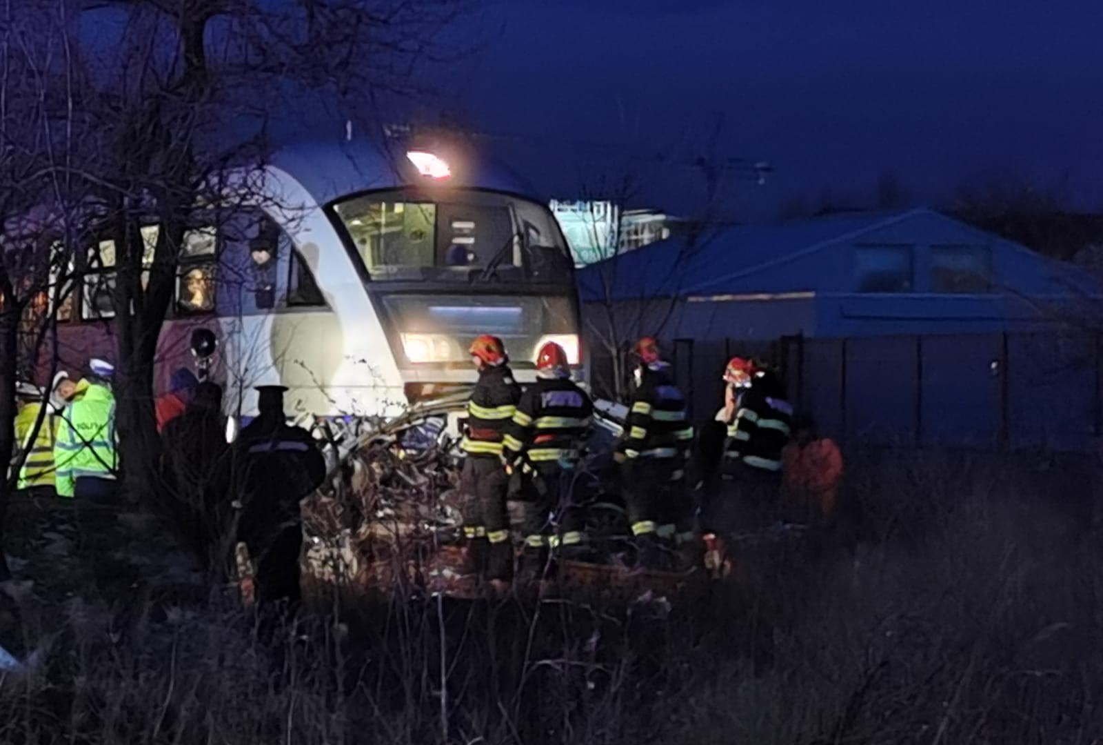 La locul intervenţiei s-au deplasat două echipaje SMURD tip B şi C, o autospecială de stingere, două autospeciale de descarcerare şi 15 pompieri. Momentan, se lucrează pentru degajarea autoturisumului de pe calea ferată.