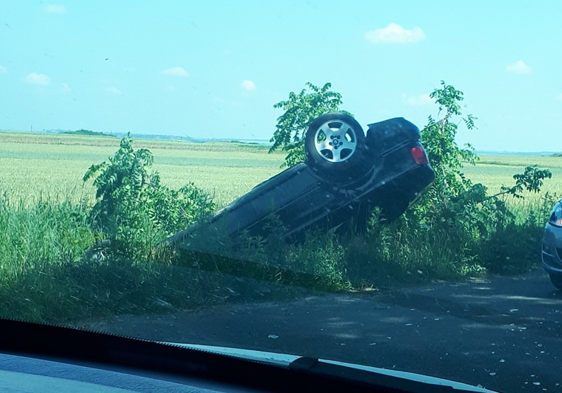 O femeie a fost rănită duminică în jurul orei 11 după ce Autoturismul Renault Laguna în care se afla s-a răstunat în şanţul de pe marginea drumului.