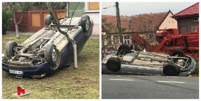 Polițiștii ajunși la locul accidentului au găsit două mașini răsturnate și din fericire nimeni nu a fost rănit grav. Un echipaj de la ambulanță a acordat totuși câteva îngrijiri medicale celor doi șoferi.
