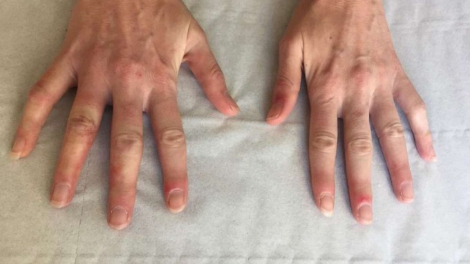 Un nou simptom descoperit recent, denumit „degetele COVID” de către comunitatea dermatologilor, se manifestă prin înroșirea degetelor de la mâini și picioare, ca și cum ar fi degerate, potrivit doctorului Misha Rosenbach, profesor de dermatologie la Spitalul din Universitatea din Pennsylvania.