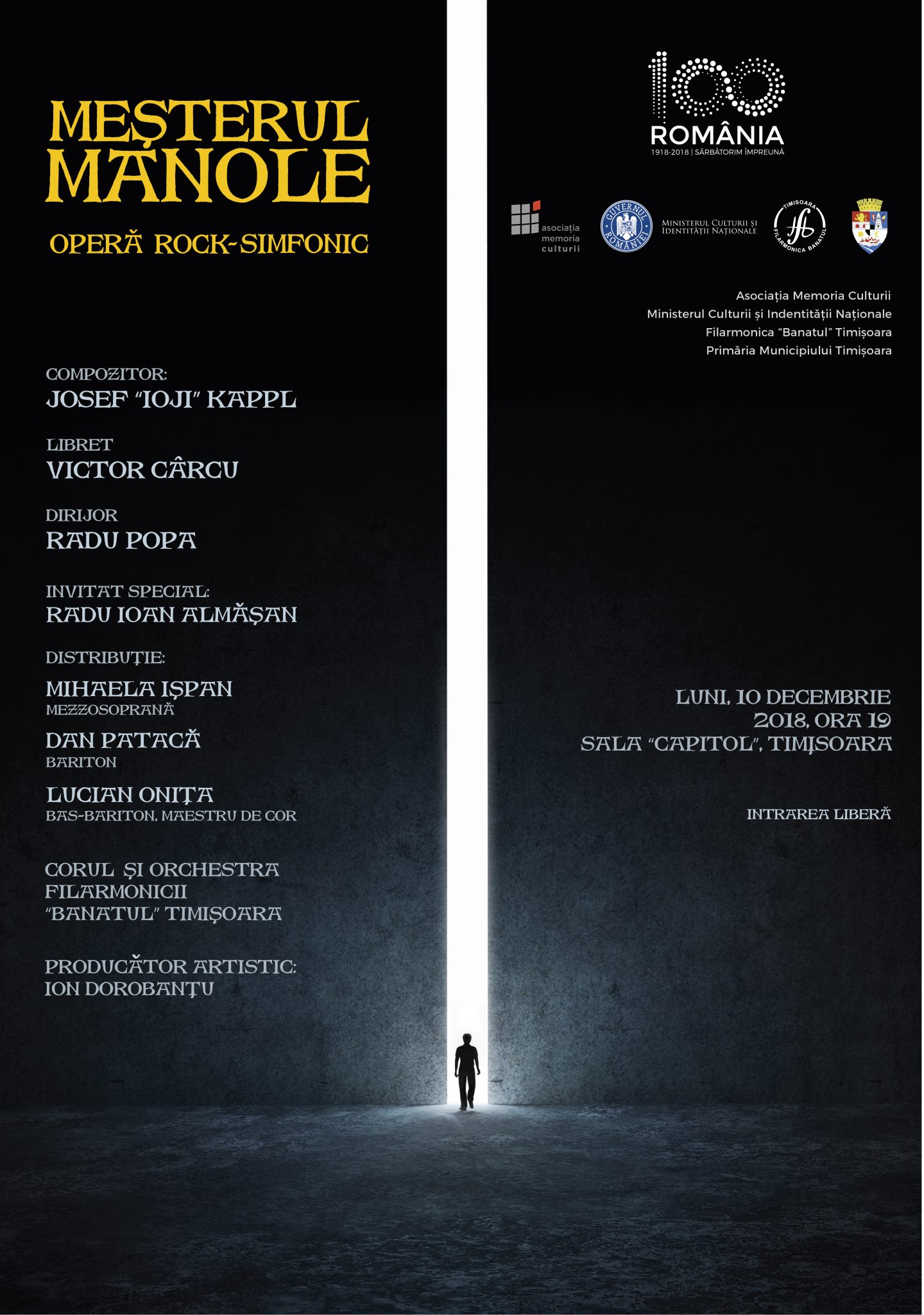 “Meșterul Manole”, operă rock-simfonic compusă de Josef Kappl pe un libret de Victor Cârcu, revine pe scena Sălii Capitol, în data de 10 decembrie 2018, de la ora 19. Asociația Memoria Culturii în parteneriat cu Filarmonica Banatul din Timișoara face posibil acest demers demult așteptat, cu susținerea Ministerului Culturii și Identității Naționale, și