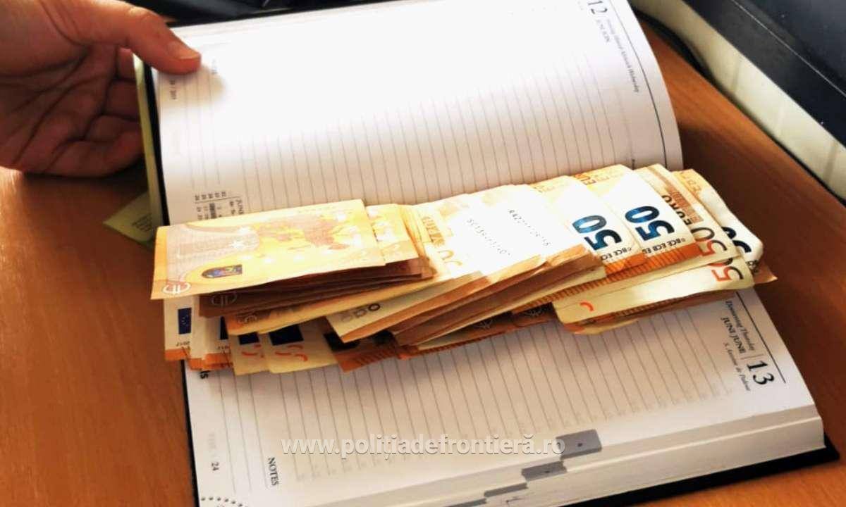 La control, unul dintre cetăţenii albanezi a introdus într-o agendă suma de 1000 de euro şi a oferit-o polițistului timișean.