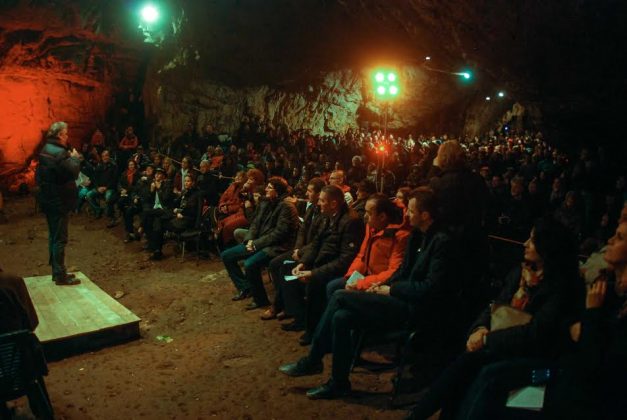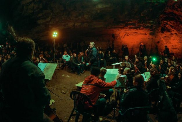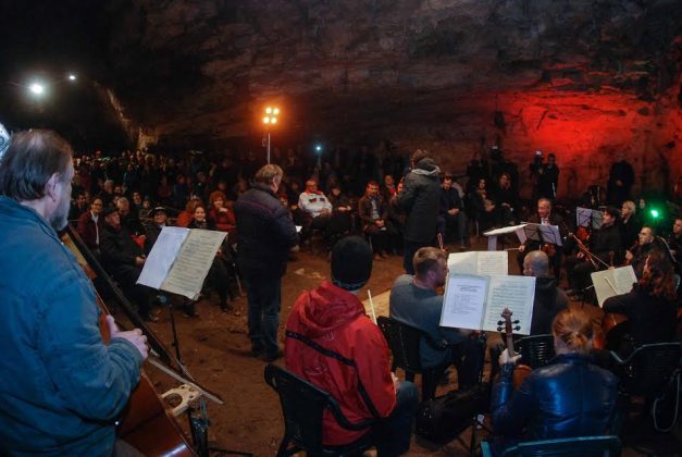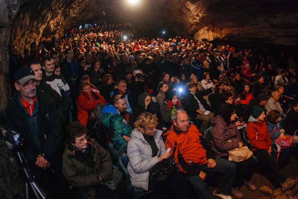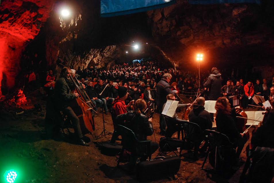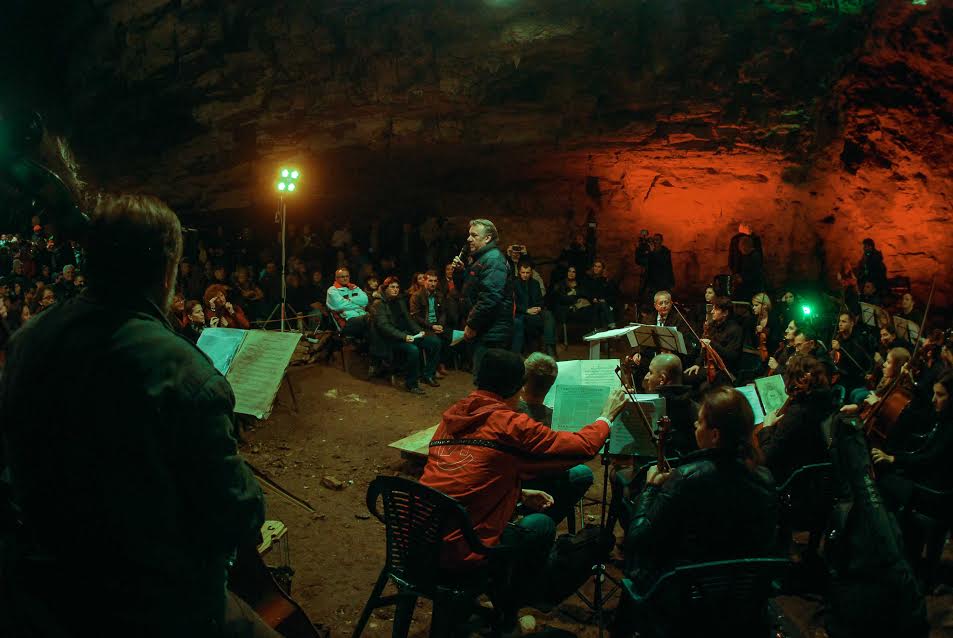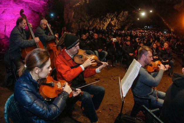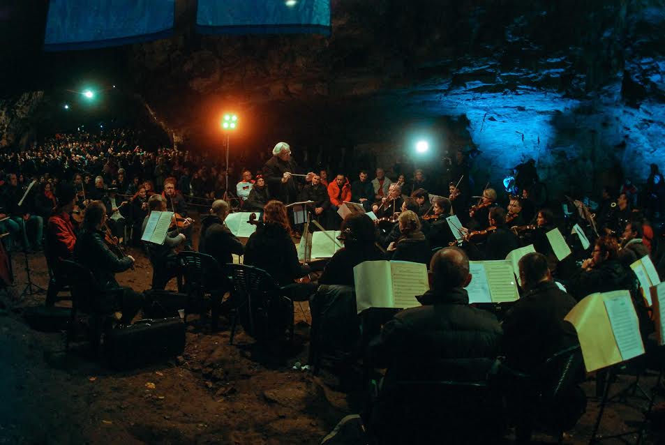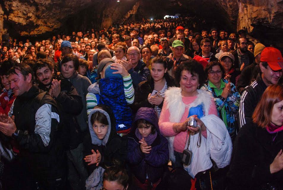 Spectatorii au îndurat frigul din peşteră şi s-au încălzit legănându-se şi aplaudând pe ritmurile orchestrei.