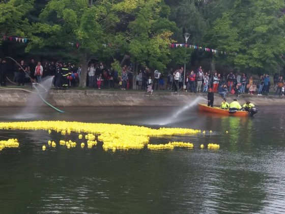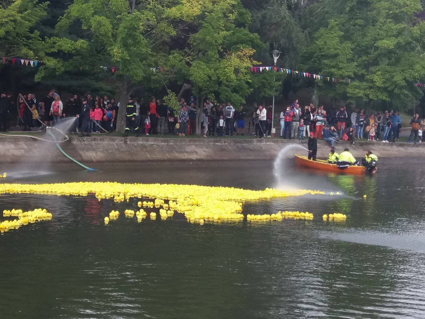 Cei care au cumpărat rățuște au așteptat cu sufletul la gură să vadă care rățușca ajunge prima la linia de finiș.