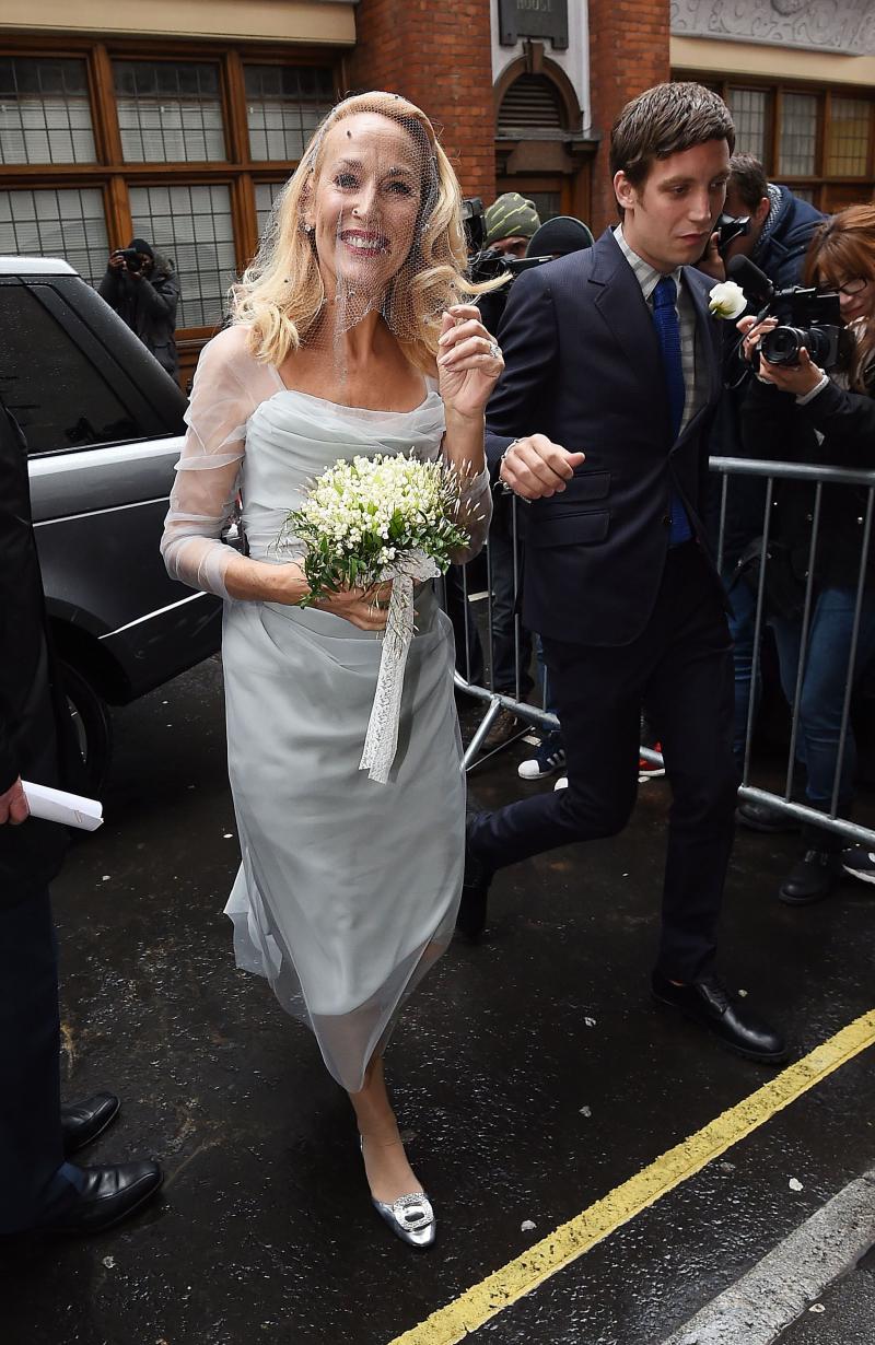 Jerry Hall este cea care i-a devenit soţie. Este cu 25 de ani mai tânără, dar cel puţin la fel de cunoscută. A fost un manechin de succes în tinereţe, iar vreme de două decenii a fost partenera de viaţă a starului rock Mick Jagger.