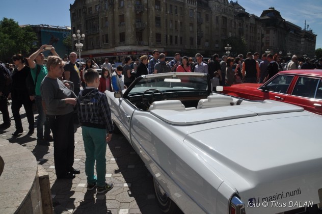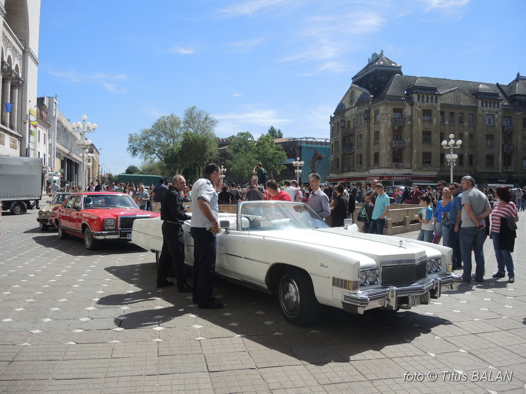 Motoare turate în Piața Operei din Timișoara. O limuzină cu care s-a plimbat Regina Angliei, printre atracțiile Retroparadei Primăverii FOTO-VIDEO