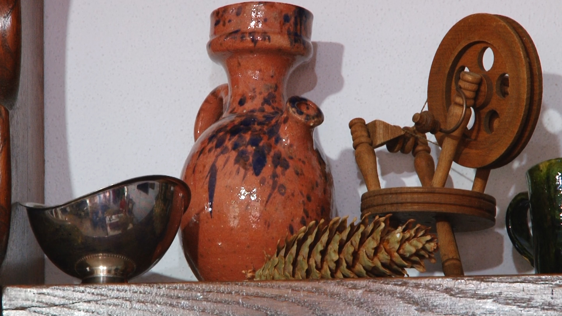 „Ce vom face în clădire? Am stat și am gândit toate variantele și ideile. Facem două încăperi în șopronul respectiv. În prima vom încropi un loc specific satului bănățean de pe vremuri. Cu ce avea o cameră tradițională de pe timpuri. În a doua secțiune care pare ceva mai sărăcuță se pot vedea niște obiecte legate de era dat bănățeanului să consume și îi era drag să apeleze la o răchie bună din când în când. Tot acolo sunt și niște recipiente interesante pentru privitorii de azi. Și mai avem încă o cămăruță care pe vremea părinților noștri a fost grajdul animalelor. Și acolo la fel s-au adunat fel de fel de obiecte cărora nu le mai găseam nici o întrebuințare. Păi trebuie să facem ordine și în grajdul ăsta și să-i dăm o folosință. Am scos tot afară, am revigorat-o, am întinerit-o și a devenit o cameră de zi locuibilă ce are chiar și un șemineu. Vara e mai mare dragul să ne retragem acolo la răcoare și liniște. Nu e ca la camerele de la șosea unde se aud zgomotele și frământarea zilnică a localității.