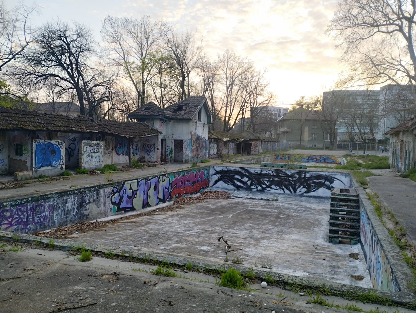 Dincolo, lângă Uszoda, câțiva adolescenți băteau mingea pe terenul de baschet, vreo patru cetățeni în vârstă jucau șah, iar un tată, alături de copilul lui, își petrecea o parte din seara de duminică la locul de joacă. Timișoreanul ne-a spus că a stat câțiva ani în străinătate și a revenit în țară abia anul trecut. Se bucură de terenul de baschet construit, dar și de faptul că ștrandul abandonat a fost împrejmuit cu gard. Totuși, ne-a spus că bazinele abandonate arată la fel ca înainte de plecarea sa în străinătate, din urmă cu „vreo 15 ani”. La intrarea în fostul bazin, plăcuța verde, inscripționată cu „PRIMĂRIA MUNICIPIULUI TIMIȘOARA/SECȚIA SPAȚII VERZI”, încă se vede clar printre straturile multiple și viu colorate de graffiti.