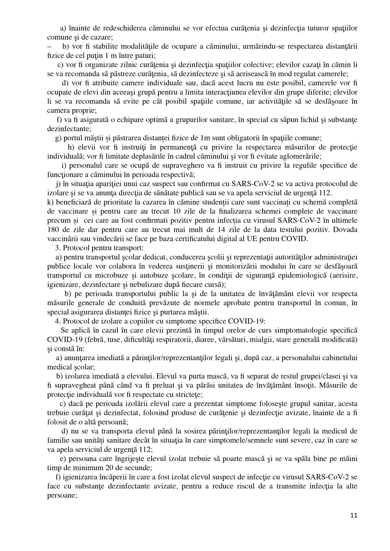 „Suspendarea cursurilor cu prezență fizică în unitățile de învățământ preuniversitar/conexe se dispune pentru o perioada de 14 zile la apariţia unui caz confirmat de îmbolnăvire cu virusul SARS-CoV-2 într-o grupă de învățământ antepreșcolar/preșcolar sau clasă de învățământ primar, gimnazial, liceal, profesional şi postliceal.