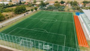 Noua bază sportivă cuprinde un teren de fotbal cu gazon natural, un teren multifuncțional, o