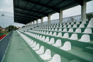 clădire cu tribună de 417 locuri, vestiare, cabinet medical și spații tehnice. Investiția este în