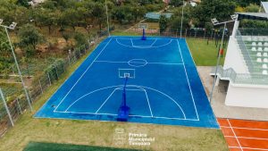 În ultimele săptămâni, au fost montate coșurile de baschet pe terenul multifuncțional, a fost