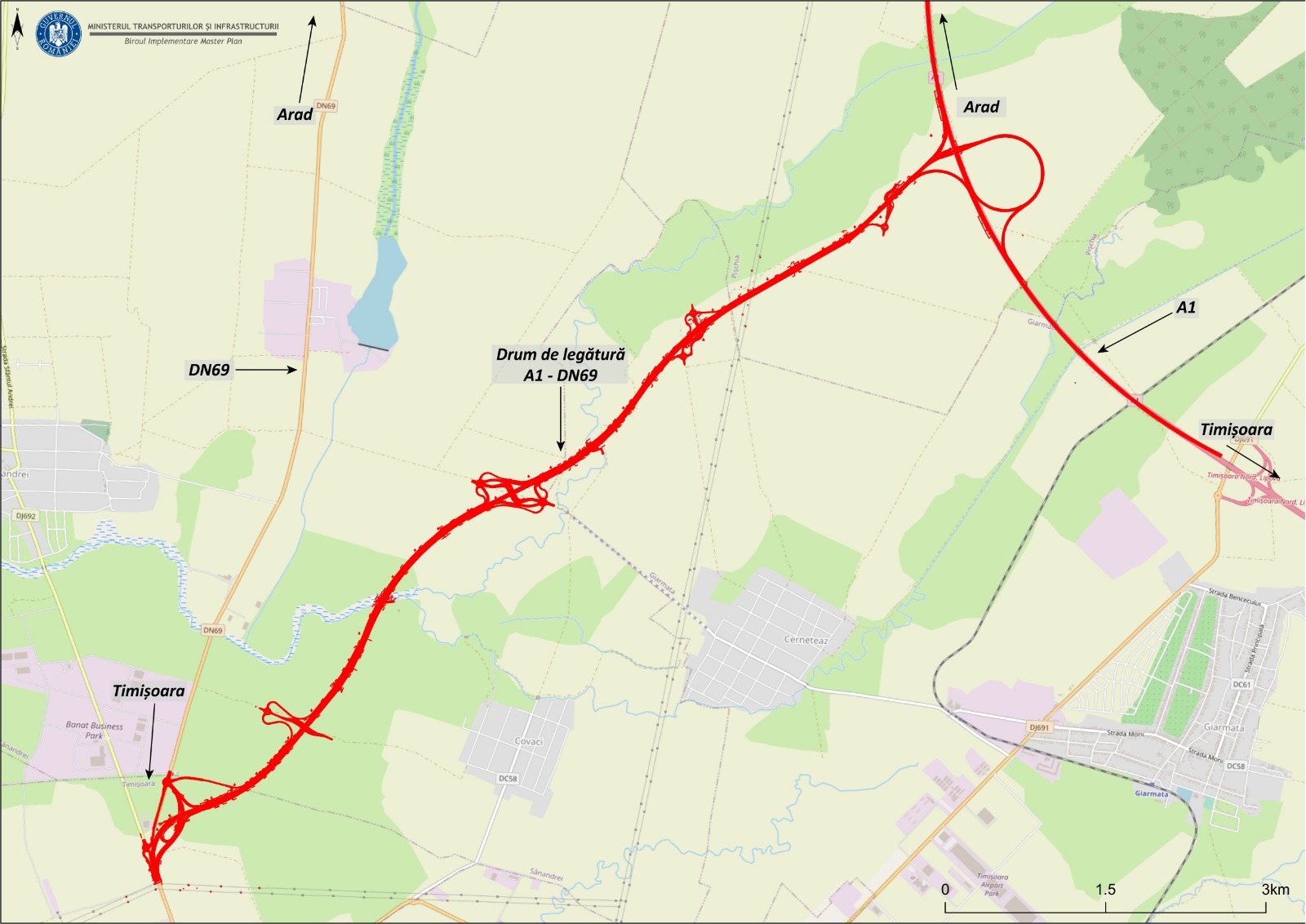 CNAIR a semnat contractul pentru proiectarea și execuția drumului de legatură Autostrada A1 Arad – Timișoara – DN 69. Câștigătorul este TODINI COSTRUZIONI GENERALI S.p.A.. Valoarea contractului este de 189.571.920,62 lei, fără TVA, și astfel se va construi un drum de 10 kilometri.