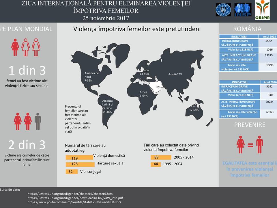 De cele mai multe ori femeile sunt victimele violențelor de tot felul. De la cea casnică la cea stradală. Nici la noi în județ situația nu este mult mai bună decât în alte locuri. Cu ocazia zilei de 25 noiembrie, Ziua Internațională a Luptei împotriva Violenței asupra Femeilor, Asociația SPICC își manifestă profunda îngrijorare față de magnitudinea și gravitatea fenomenului în România. În contextul celor 16 zile de activism împotriva violenței de gen, care demarează odată cu ziua de 25 noiembrie și se încheie, în mod simbolic, în data de 10 decembrie, Ziua Internațională a Drepturilor Omului, asociația insistă asupra faptului că violența și amenințarea cu violența reprezintă o încălcare gravă a drepturilor omului, statisticile referitoare la situația din țara noastră relevând faptul că o treime dintre femeile din România se află din această cauză în situație de risc. Diferitele tipuri de violență masculină îndreptate împotriva femeilor încalcă dreptul fundamentul la siguranța persoanei și reprezintă o expresie a dezechilibrului de putere dintre bărbați și femei.