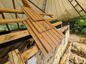 Se va reface fundația în tehnica zidăriei uscate din piatră de carieră, fără a se folosi beton, se vor înlocui tălpile degradate cu tălpi noi, realizate prin cioplirea buștenilor de gorun care au fost tăiați la începutul lunii martie 2022.