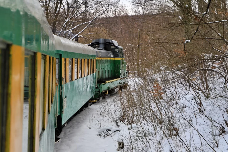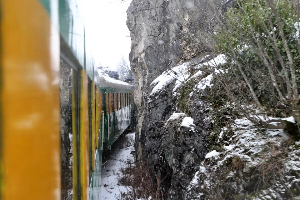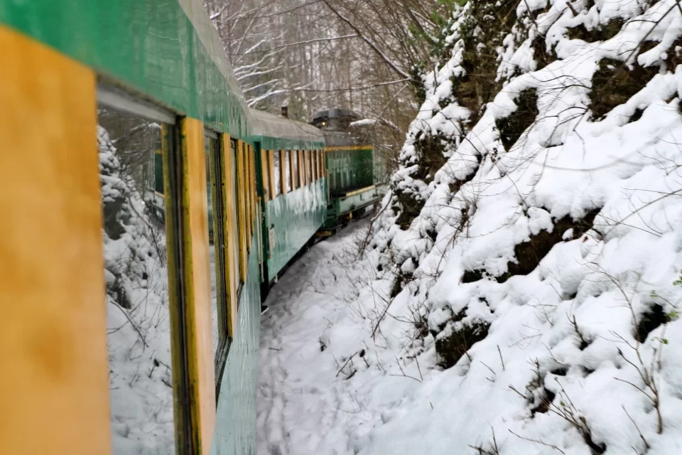 Din momentul în care pășești în vagon, începi să simți un miros de lemn ars, care te duce cu gândul la copilărie. Vine de la cuptorul instalat în mijlocul vagonului, în care un bărbat bagă de zor lemne, pentru a încălzi spațiul în care vor sta pasagerii timp de două ore. Călătorii, majoritatea aflați la prima „aventură” pe această cale ferată, sunt curioși să admire pe geam frumusețile naturii. „După ce trenul oprește în cea de-a treia stație, începe peisajul spectaculos”, le spune „nașul” turiștilor.