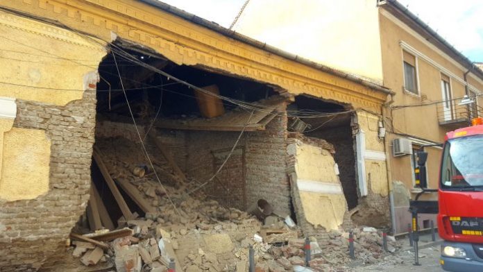 O clădire aflată pe strada Gheorghe Lazăr numărul 6, din Arad, s-a prăbușit astăzi. Brusc, niște muncitori care se aflau în interior pentru a executa niste lucrări de întreținere a pereților au auzit zgomot și au fugit afară din clădire. Totul a început cu prăbușirea podului, după care și pereții, conform specialarad.ro.
