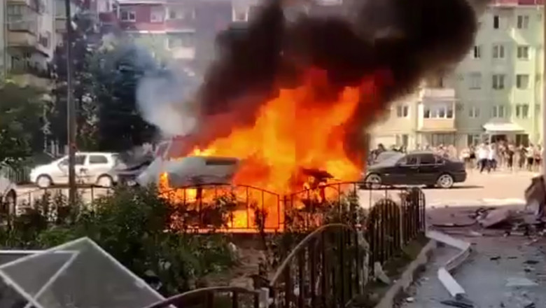 O dubă plină cu butelii de oxigen a luat foc în apropierea unui bloc de locuințe, marți, în Râmnicu Vâlcea. Incendiul a fost urmat de explozie.