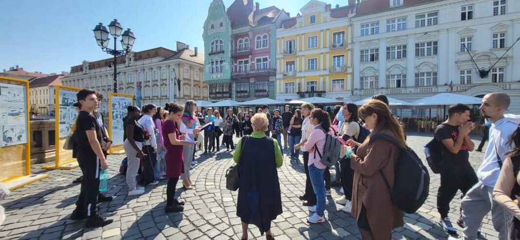 Dacă treci acum prin Piața Unirii din Timișoara, vezi rânduite, cu fața către Muzeul Național de Artă și spre splendida Casă Brück, opt panouri galbene cu o expoziție neobișnuită. De departe, pare o poveste în benzi desenate pentru copii. De aproape însă, vezi personaje în uniformă nazistă, oameni bătuți și schingiuți. Expoziția spune o poveste din istoria dură a Holocaustului din Banat, documentată de elevii a două școli, Școala Gimnazială 18 din Timișoara și Liceul „Iulia Hasdeu” din Lugoj.