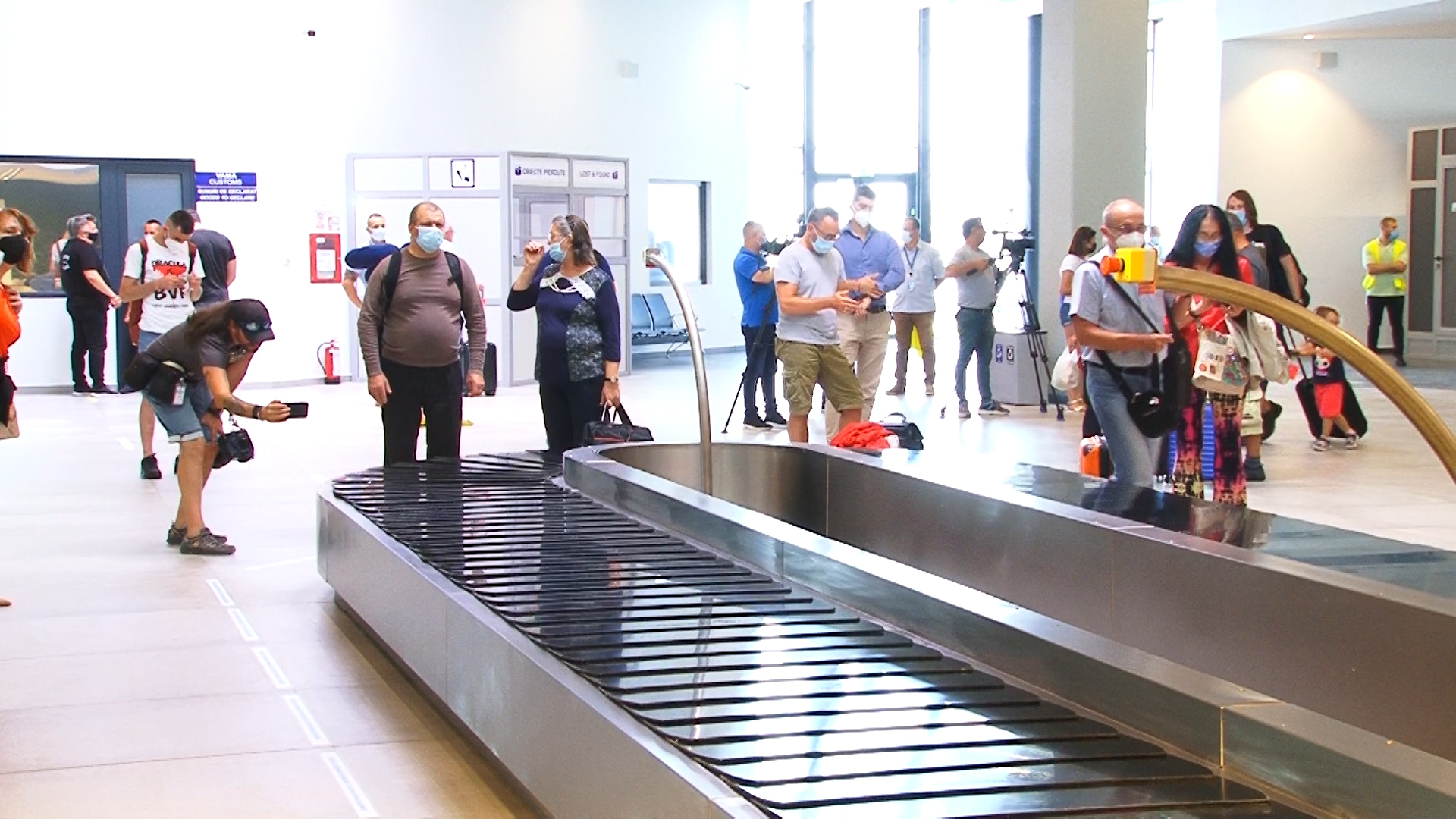 Oficialii din conducerea aeroportului au fost de față, alături de echipe de presă, să vadă cum funcționează noul terminal de sosiri al Aeroportului Internațional Timișosara.