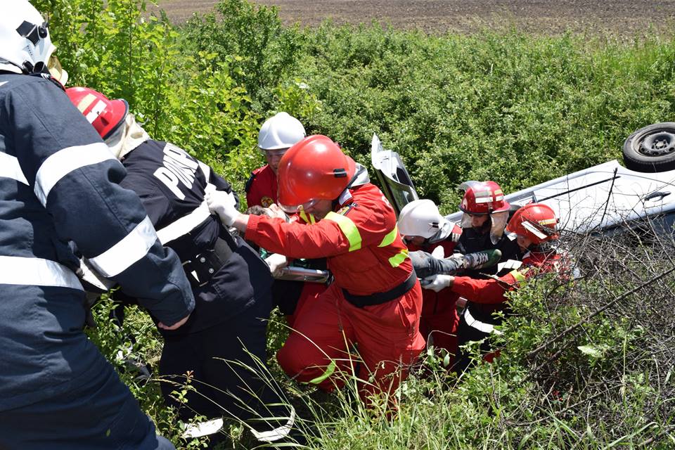 După scoaterea victimelor din mașină, s-au asigurat măsurile de prevenire și stingere a incendiilor și degajarea autoturismului din șanț.