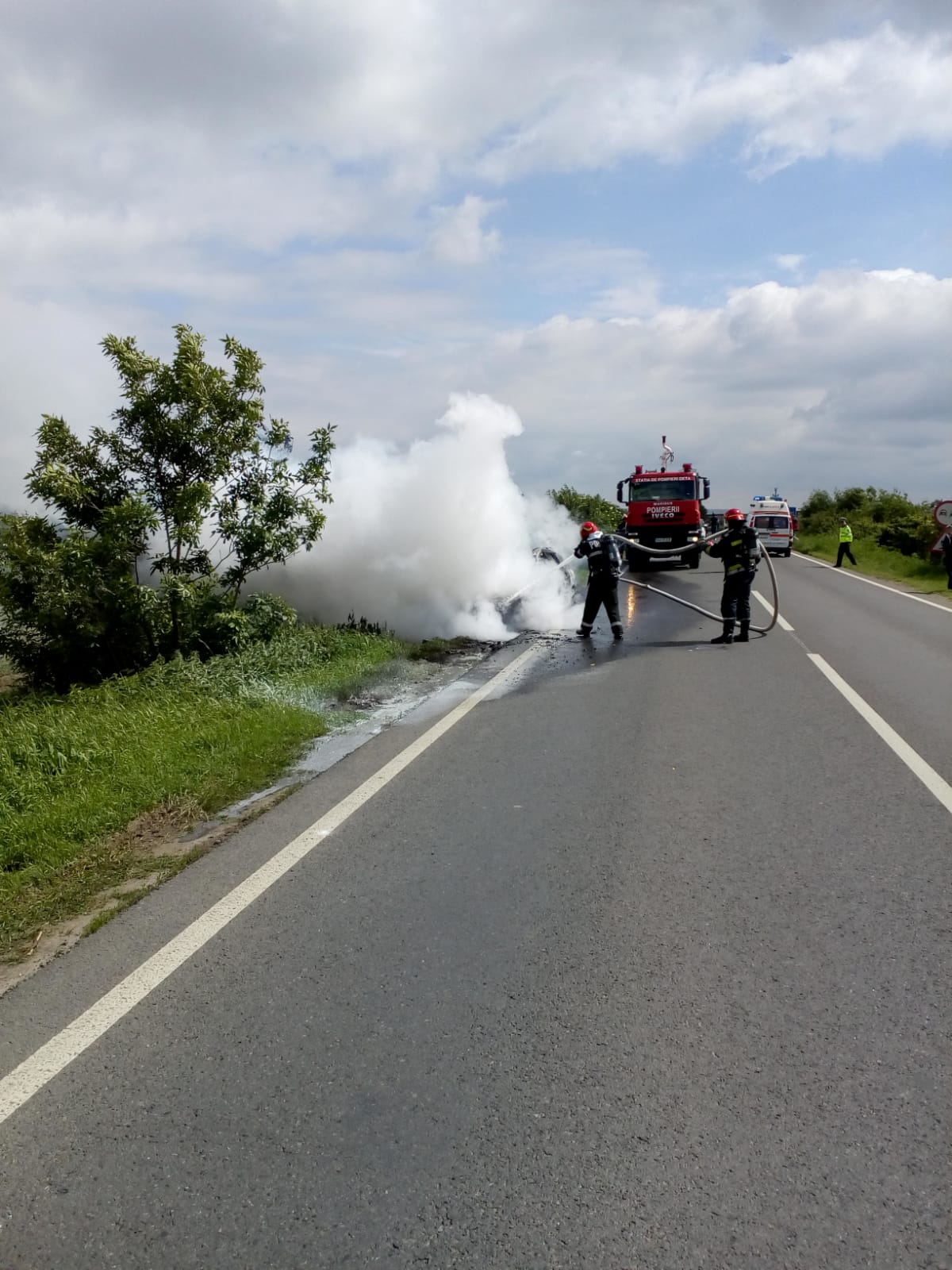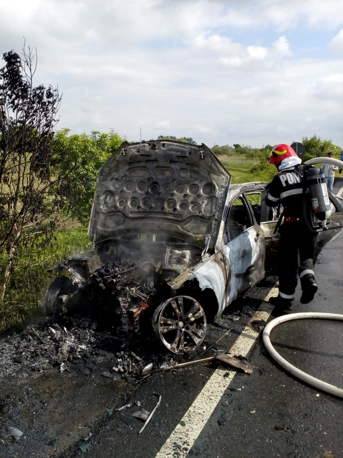 O mașină a luat foc în mers, în această după amiază, la ieșire din localitatea Jebel. Pompierii au intervenit cu o autospecială pentru a stinge flăcările care au cuprins, cu repeziciune, autovehiculul tras pe dreapta.