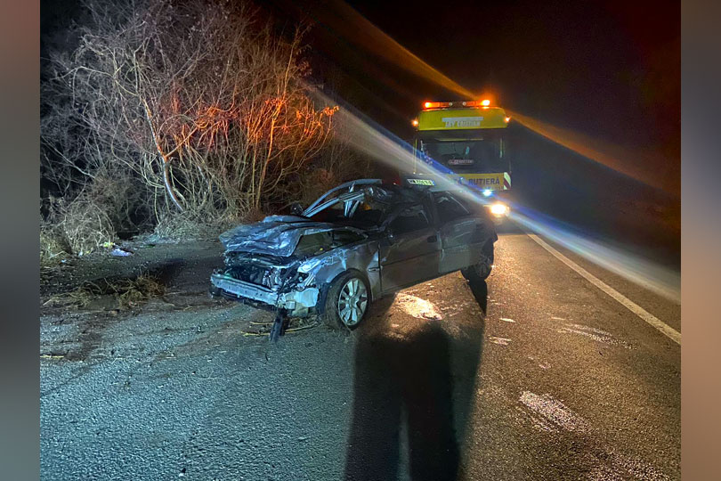 Un autoturism a zburat într-o prăpastie adâncă de peste15 m. Accident grav, în Valea Almăjului, în zona Lăpușnicel. Un autoturism în care se aflau două persoane, a plonjat în râu de la o înălțime de cel puțin 15 – 20 de metri. Mașina s-a făcut ca o cutie de conserve și două persoane au fost transportate de urgență la spital. Accidentul s-a petrecut pe drumul național 57 B, în apropiere de localitatea Lăpușnicel. Un autoturism a plonjat de la mare înălțime și a ajuns cu roțile în sus în râu. În zona unde accidentul s-a petrecut, drumul trece printr-un defileu și sunt foarte multe curbe. Cel mai probabil, viteza combinată cu asfaltul umed, a condus la producerea accidentului.