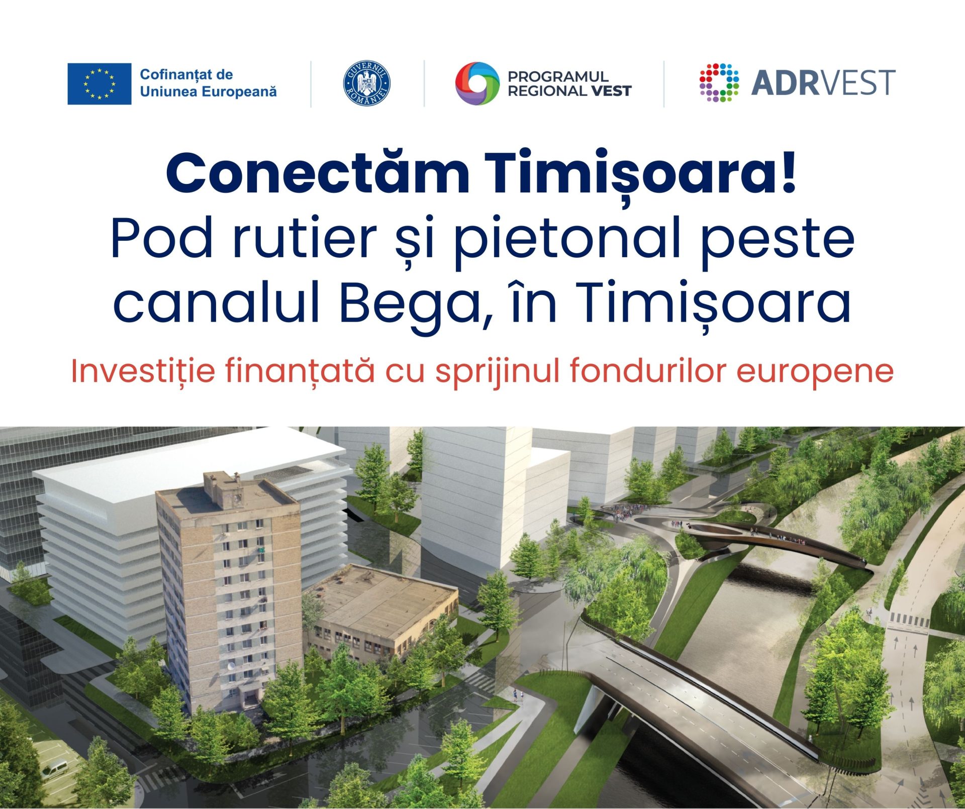 O șosea cu patru benzi de circulație, un pod rutier și unul pietonal peste Bega, piste de biciclete și trotuare moderne – toate vor fi realizate la Timișoara, în cadrul unuia dintre cele mai importante proiecte de descongestionare a traficului realizate în oraș, după Revoluție. A fost semnat contractul de finanțare pentru proiectul „Amenajare Inel II de circulație, sector cuprins între strada A. Demetriade și bulevardul J.H. Pestalozzi, construire pod rutier și pod pietonal peste Canalul Bega”, prin Programul Regional Vest.