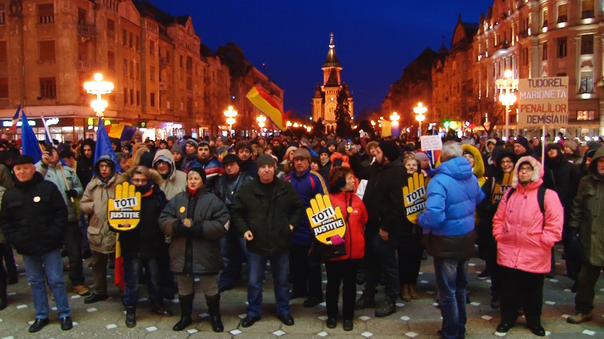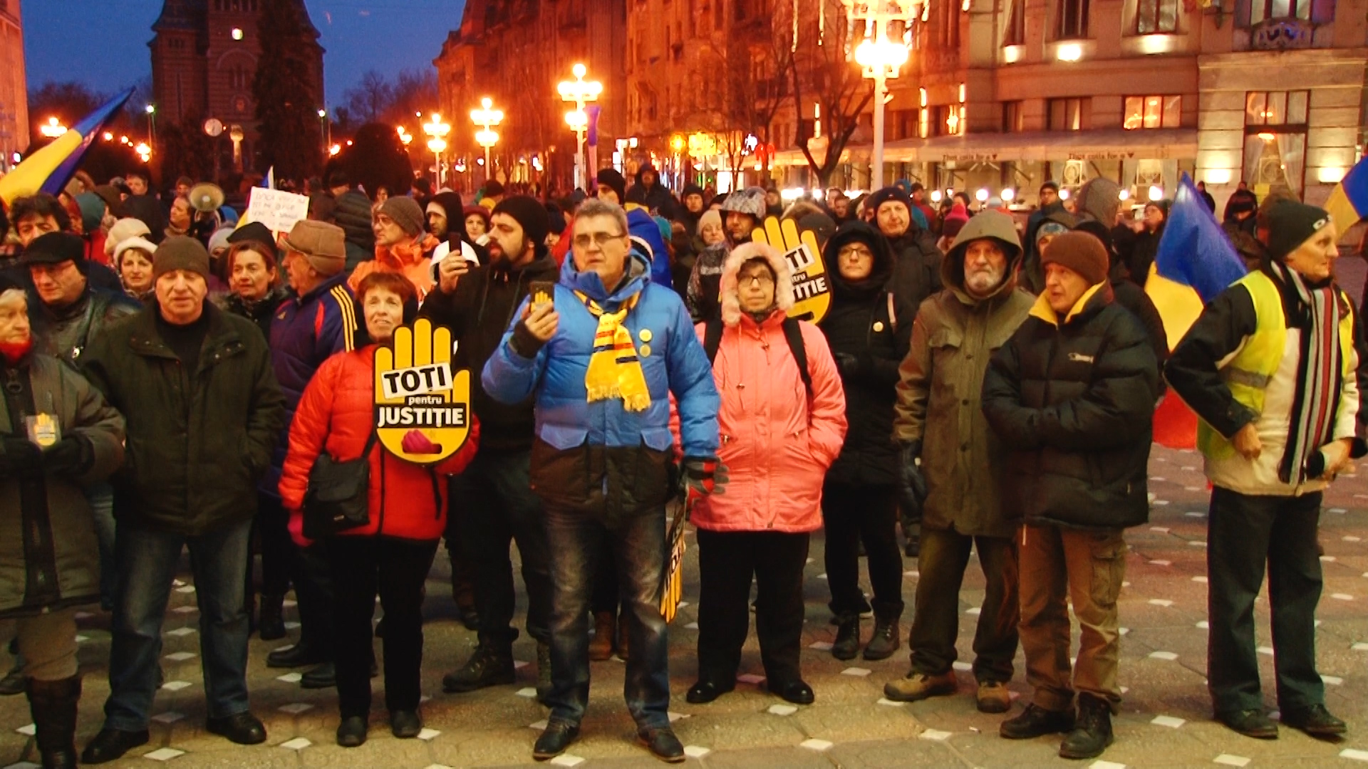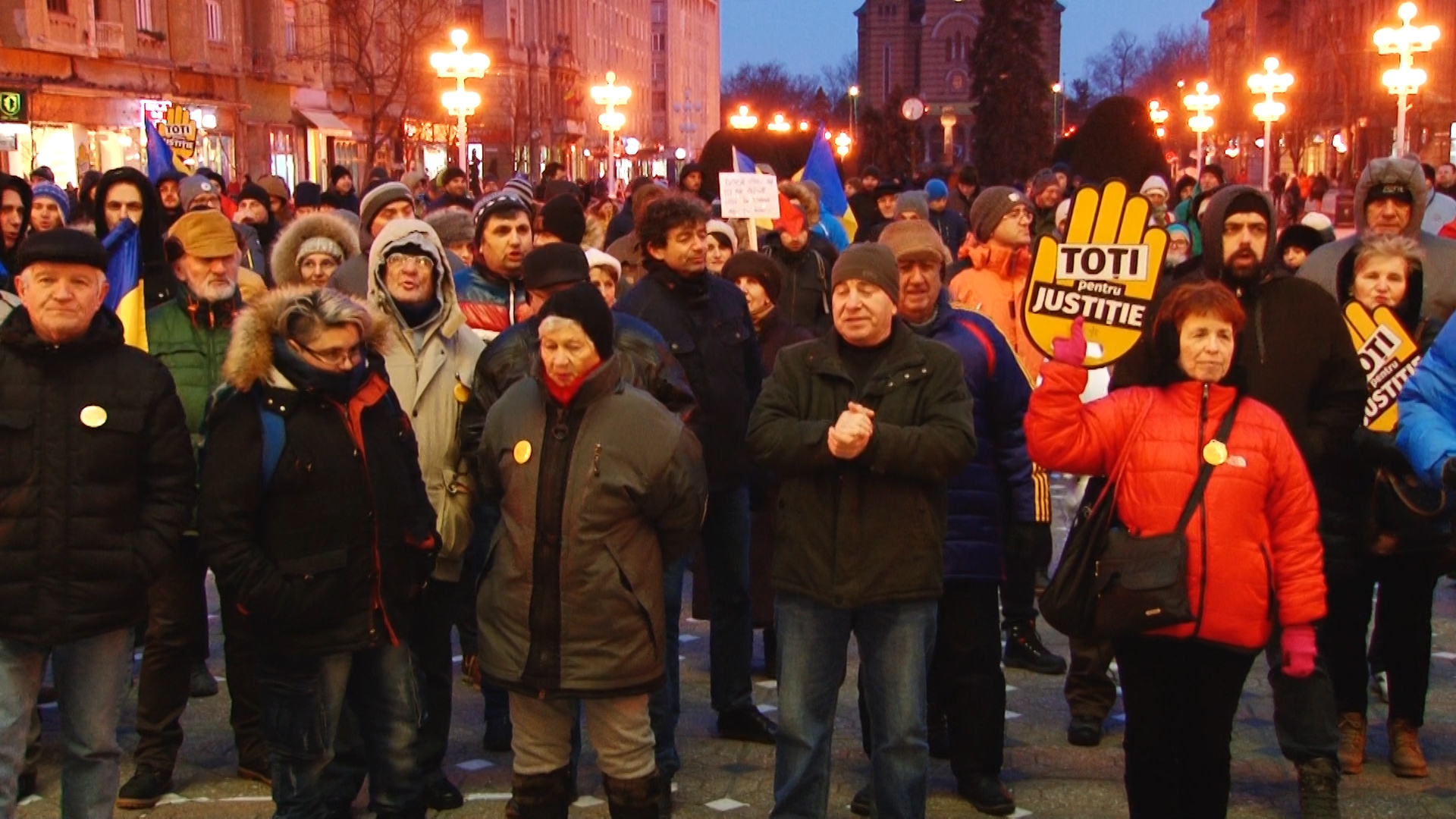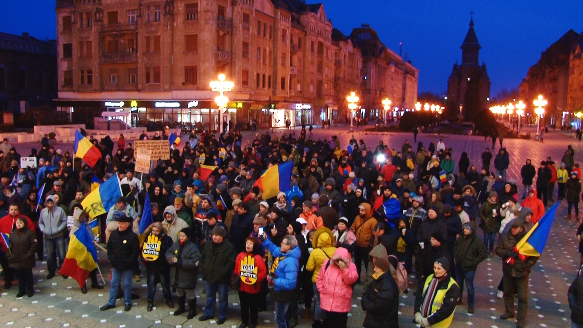 Update 3: Protestul de la Timișoara s-a încheiat.  Nu au fost incidente. Printre lozincile strigate în Piața Victoriei sau numarat: Tudorel, Tudorel pleacă în statul paralel; Justiție nu coruptie; Nu va fie frica, Dragnea pica; Afară,  afară corupția din tara; DNA suntem de partea ta; Noaptea hoți,  ziua mafioti