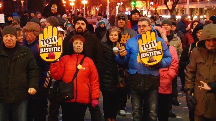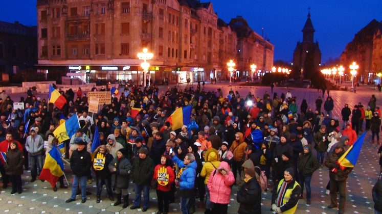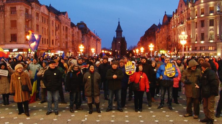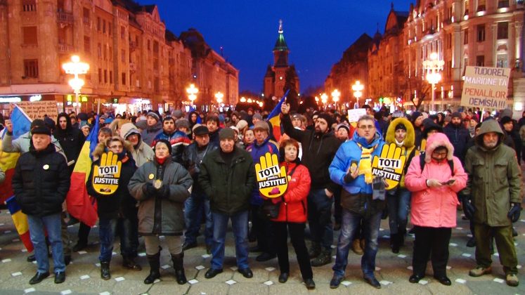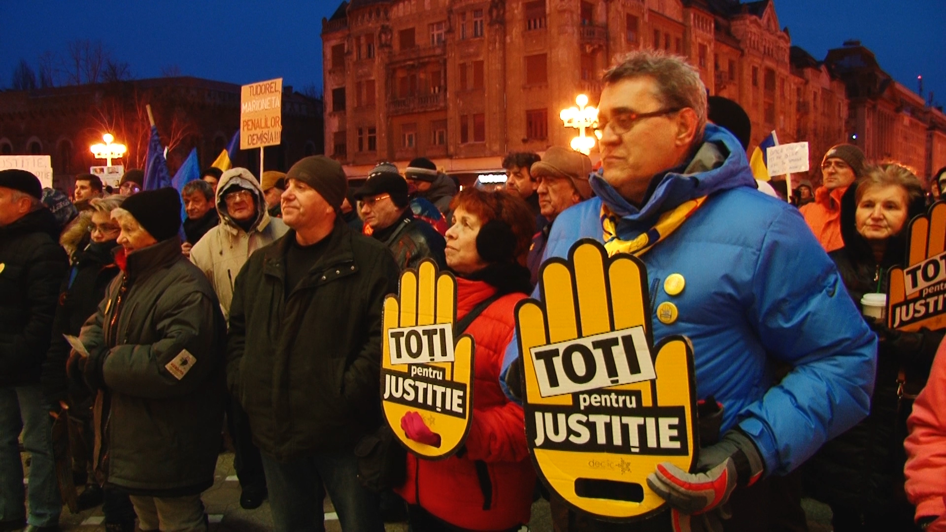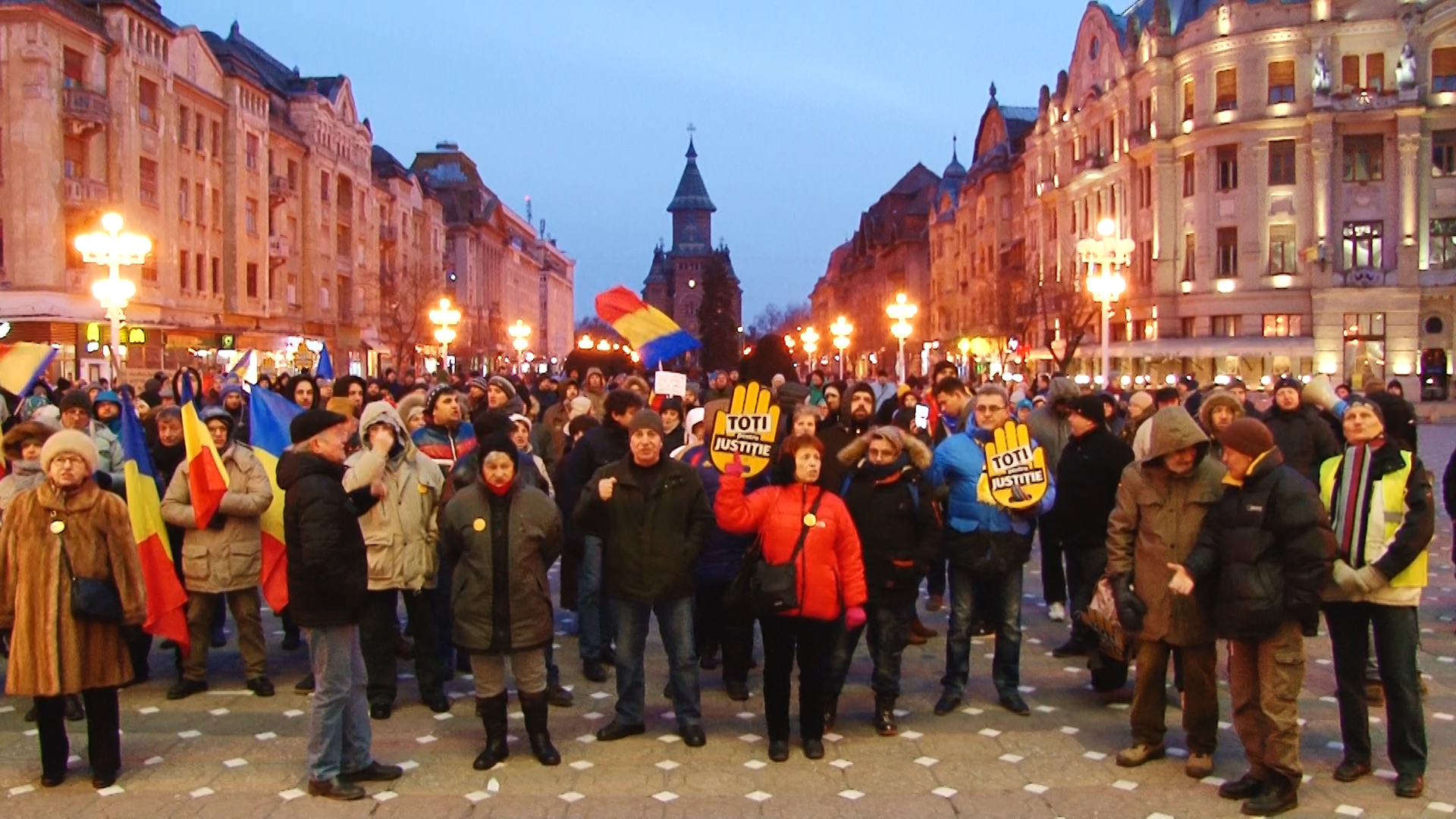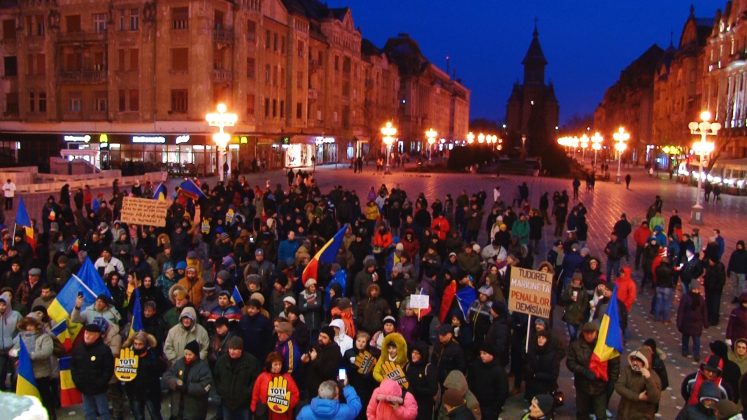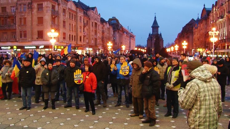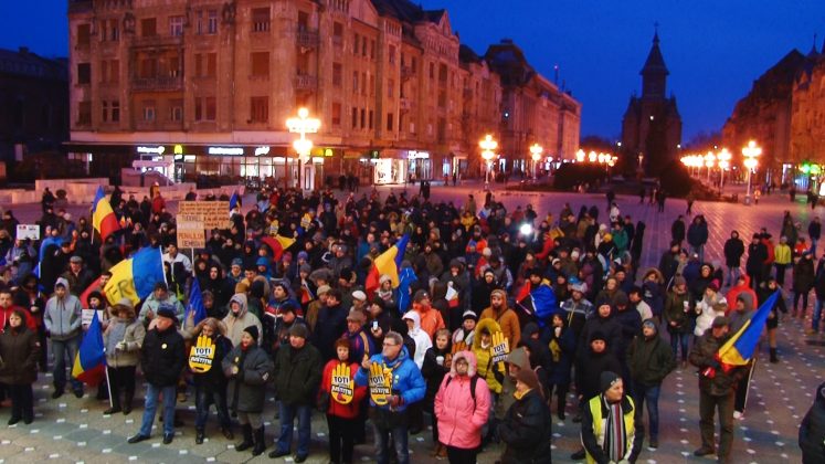 Update 3: Protestul de la Timișoara s-a încheiat.  Nu au fost incidente. Printre lozincile strigate în Piața Victoriei sau numarat: Tudorel, Tudorel pleacă în statul paralel; Justiție nu coruptie; Nu va fie frica, Dragnea pica; Afară,  afară corupția din tara; DNA suntem de partea ta; Noaptea hoți,  ziua mafioti