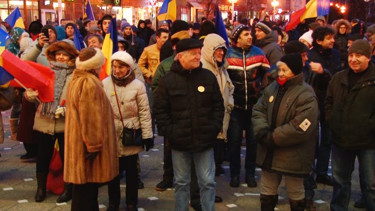 Update 2: Lumea indura frigul, care se resimte la -11 grade. În piață au tot venit oameni rand pe rand. La o ora de la începerea protestului, în strada sunt prezenți peste 500 de persoane.
