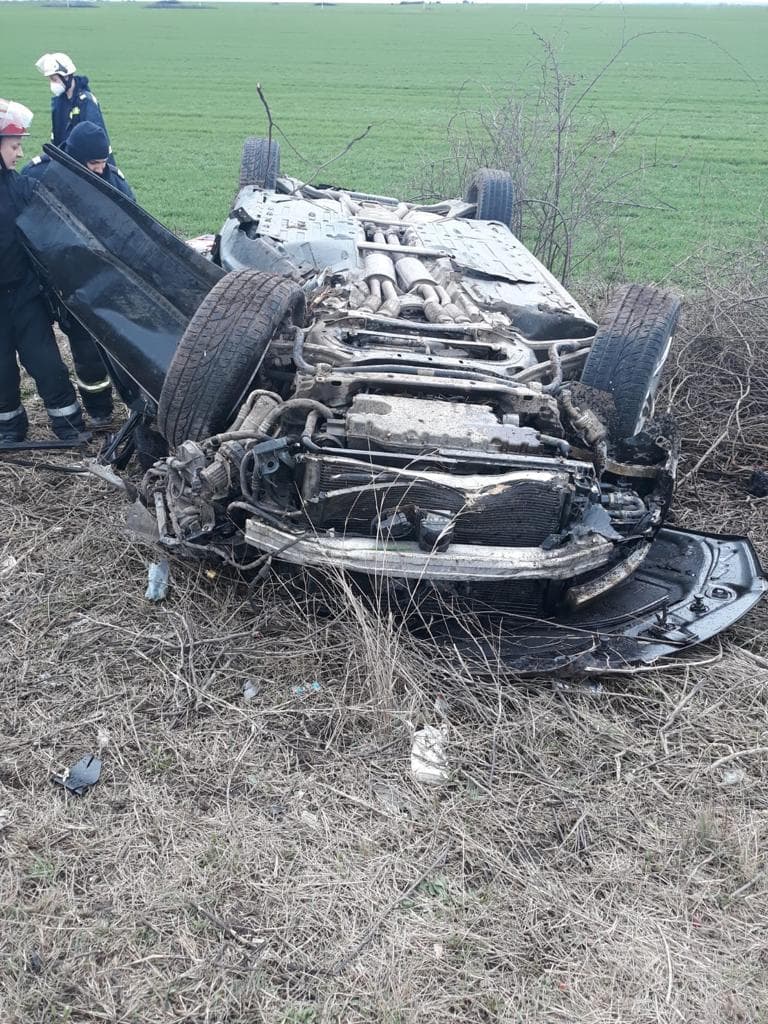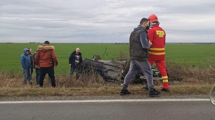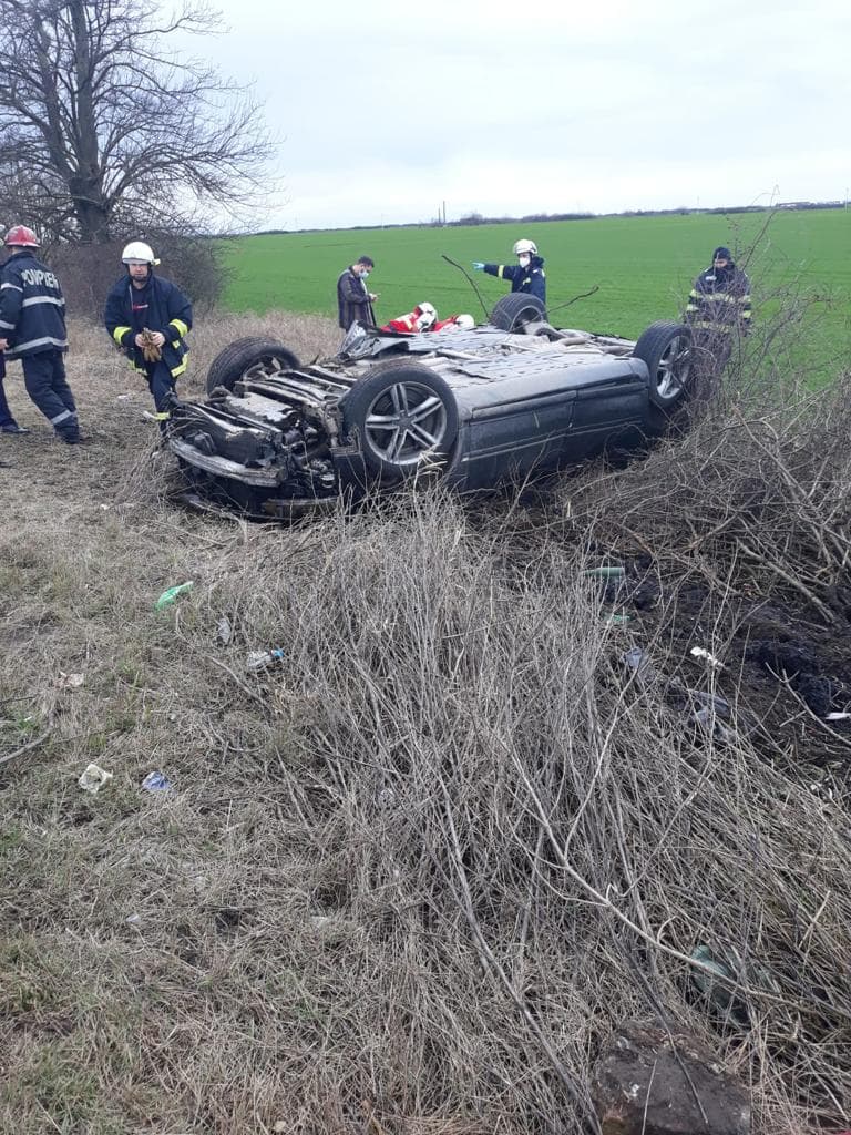 Update: Șoferul a murit! Din nefericire, manevrele de resuscitare nu au avut succes, iar medicii au pronunțat decesul. Din primele informații, soferul a pierdut controlul mașinii, a ieșit de pe drum și s-a răsturnat pe câmp.