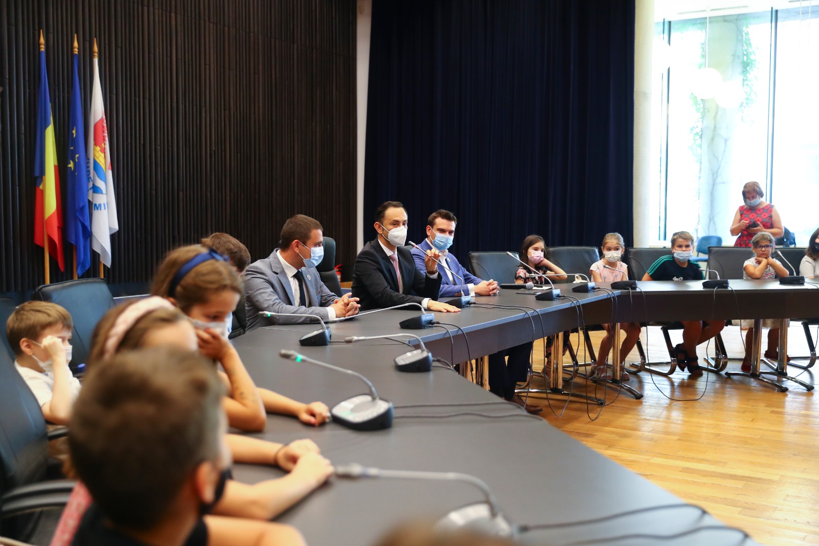 Peste 100 de elevi timișeni au aflat ce înseamnă să fii consilier județean. Copiii au analizat și votat proiecte de Ziua Județului. Consiliul Județean Timiș a fost luat cu asalt în dimineața de miercuri de mai mult de 100 de elevi interesați de activitatea instituției.