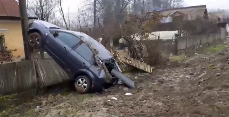 Mașina condusă de tânără s-a izbit de autoutilitară și a fost proiectata pe un stâlp aflat în apropiere, după ce a dărâmat gardul aflat în fața acestuia. Din fericire, nimeni nu a fost rănit.
