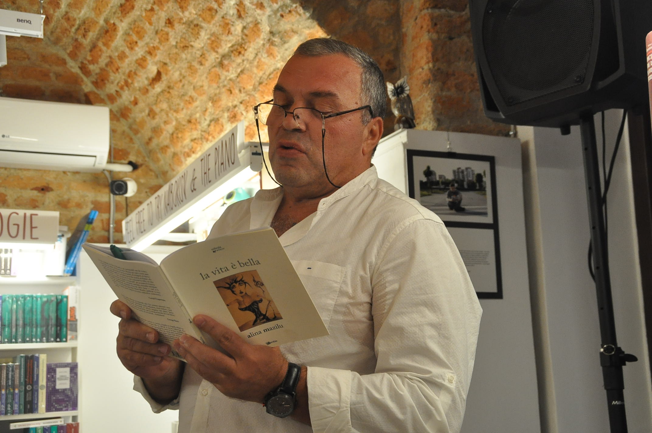 Cine citește doar titlul „la vita è bella” cu greu poate să-și imagineze cine este personajul principal. Cartea este dedicată festivalului de teatru de la Sibiu la care a trudit de multe ori Alina Mazilu.