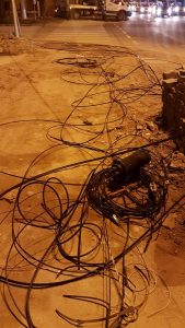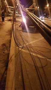 Un nou episod al operațiunii „ghilotina” se consumă, în această seară, la Timișoara. Administrația locală continuă tăierea cablurilor de pe stâlpi, de data aceasta, în zona Michelangelor – I.C. Brătianu.