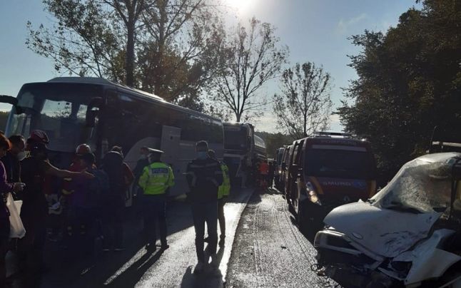 La locul accidentului au fost trimise două ambulanţe SMURD de prim ajutor, o autospecială de transport victime multiple, o autospecială de terapie intensivă mobilă, o autospecială de stingere cu apă şi spumă şi două echipaje din cadrul serviciului de ambulanţă judeţean. În urma accidentului, pe carosabil se produc scurgeri de combustibil, iar traficul rutier în zonă este blocat.