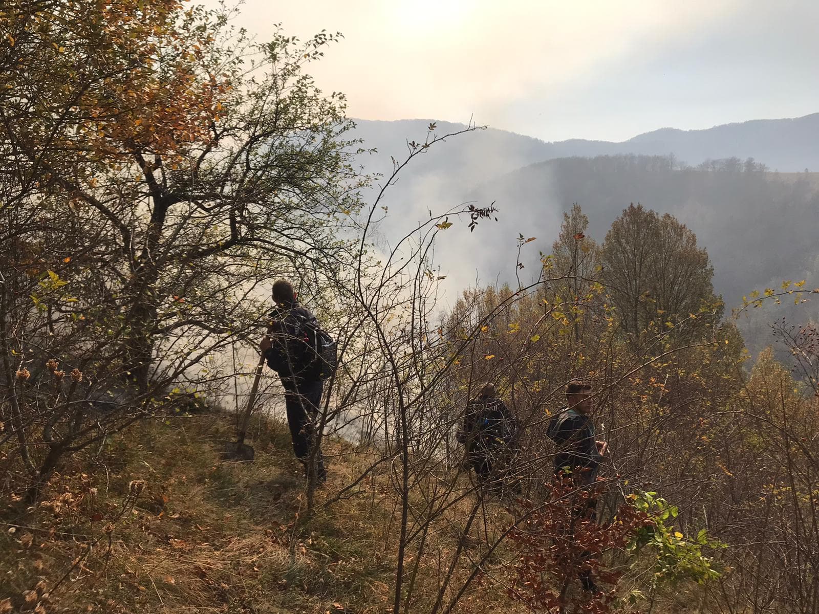Duminică, 10 pompieri 10 pădurari și 5 rangeri din Parcul Național Domogled au continuat lupta cu flăcările. Misiunea a fost reluată astăzi. Vom reveni cu amănunte!