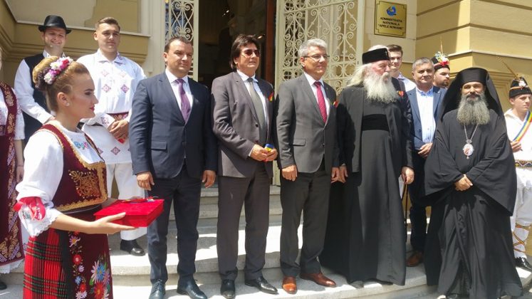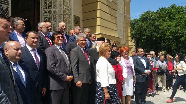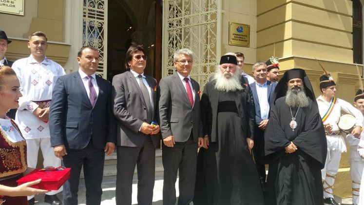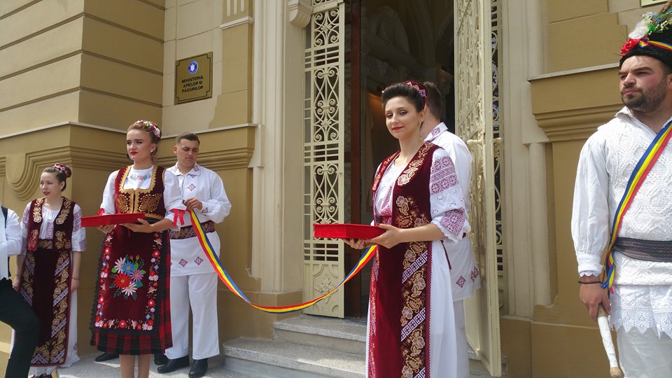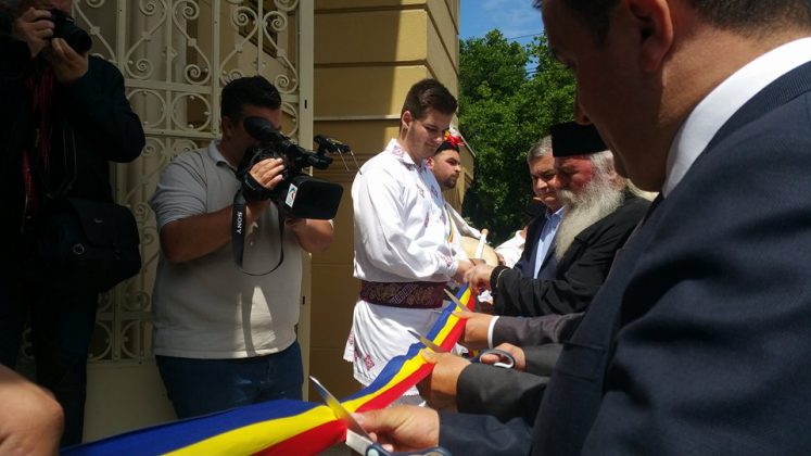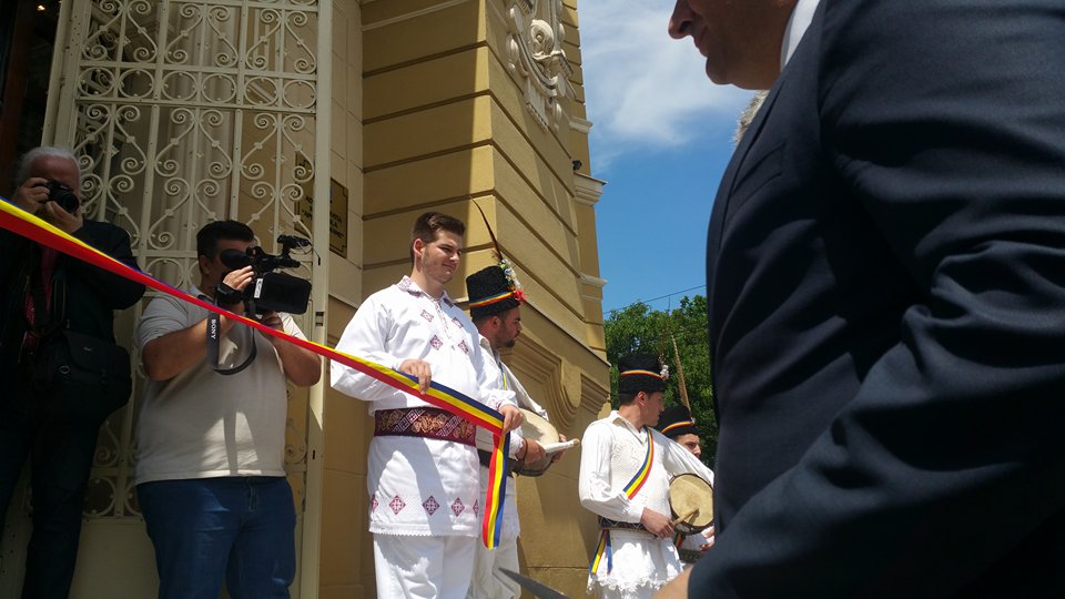 În fata Palatului, alaiul de oficialități a foat întâmpinat de tineri îmbrăcați în straie populare. S-a tăiat și panglica inaugurală.