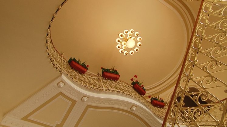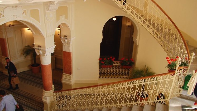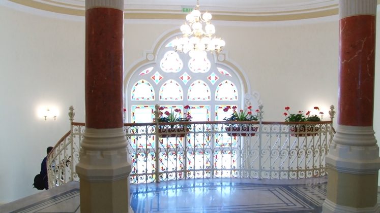 Acum, aici s-au întors angajaţii Direcţiei de Apă Banat. Mai mult decât atât, turiştii pot să viziteze palatul şi să-şi facă o fotografie cu superbul vitraliu din holul mare.
